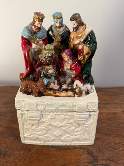 Vintage Nativity Scene Trinket Box – Hand-Painted Christmas Decor
