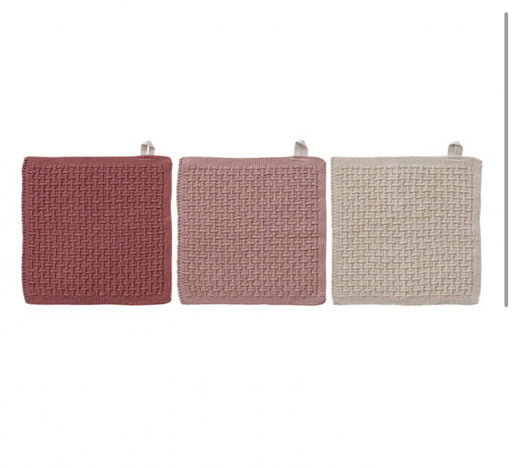 Square Cotton Knit Dish Cloths, Set of 3, 10.5"