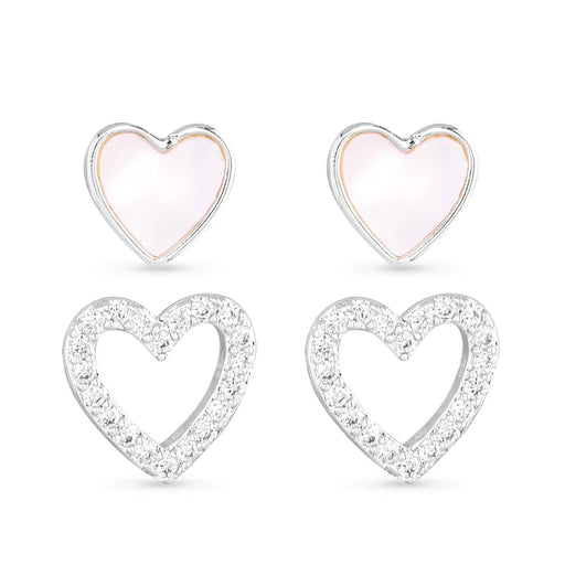 Sterling Silver & Mother-of-Pearl Heart Stud Earring Set