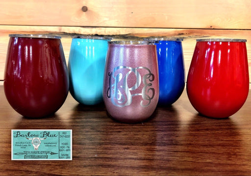 Stemless Wine Glass. 12oz powder coated stainless steel. Personalization not included