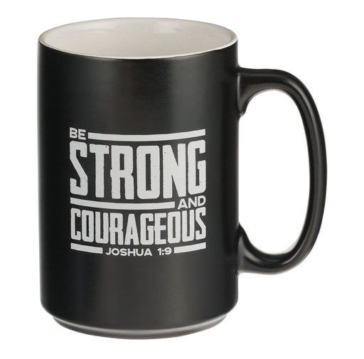Strong and Courageous Black Lion Ceramic Coffee Mug - Joshua 1:9