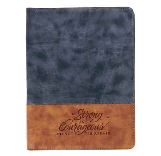 Strong and Courageous Butterscotch and Navy Faux Leather Padfolio - Joshua 1:9
