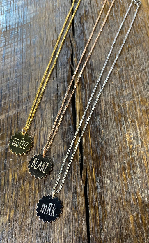 this necklace is available in gold, rose gold, and silver the monogram pendant is approximately .60" you choose your chain length: 16", 18", 20", ...