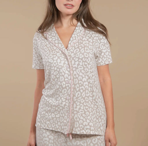 Only 1 left!Glamorous and cozy, this 'Taupe Leopard' pajama top is perfect for any occasion. A Perfect Neutral Base With A Timeless Pattern Flattering Notch C...