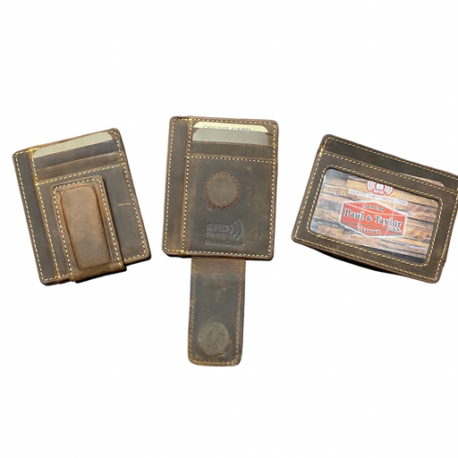 in stockGenuine Leather Money Clip Card Holder Wallet. These can be personalized with a name or whatever you would like on them.