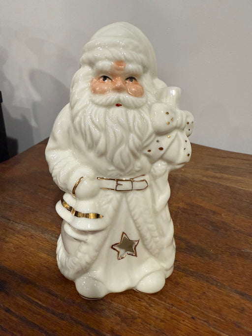 Vintage Ceramic Santa Luminary – White & Gold Accents