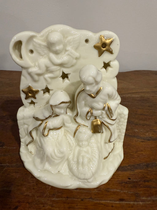 Vintage Ceramic Ivory & Gold Nativity Candle Holder