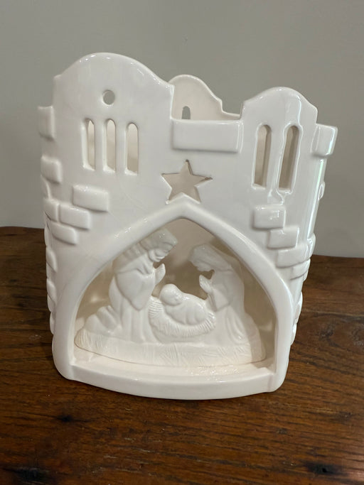 Vintage White Ceramic Nativity Scene Candle Holder – Holy Family Christmas Décor