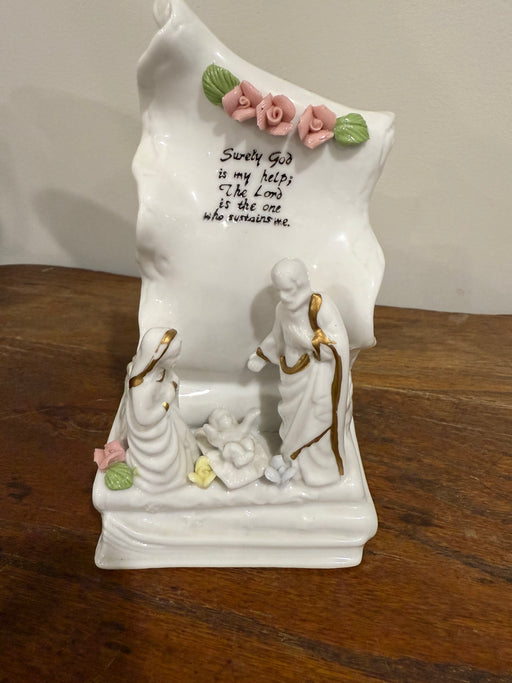 Vintage Porcelain Nativity Figurine – “Surely God Is My Help” Scripture Scene