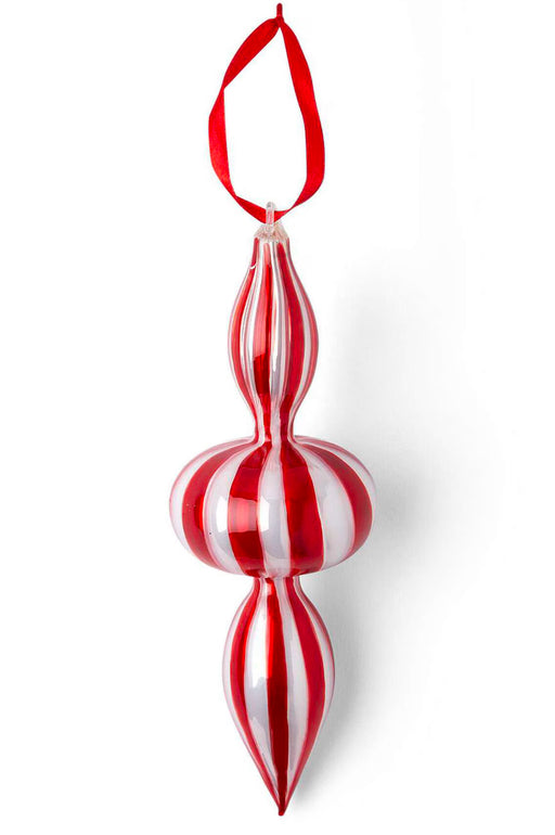 7" Christmas Red Stripe Finial Vintage Glass Ornament