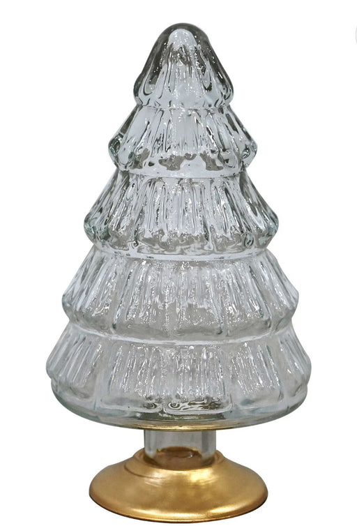 in stockDecorate Your Home with the 7" Clear & Gold Glass Christmas Tree by Place & Time Add a touch of elegance to your holiday decor with the 7" ...