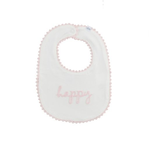 in stockThe Happy Embroidered Pink Bib is a delightful addition to your baby's mealtime essentials. Crafted from a soft and stretchy cotton spandex blend, ...