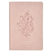 The Pink Floral Faux Leather Large Print Thinline King James Version Bible with Thumb Index pairs beautifully with other items in the Trust Mottled Blush Collection, which includes a faux leather notebook, stainless steel water bottle, faux leather journal, ceramic coffee mug, and faux leather bookmark.