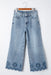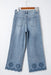 Dusk Blue Embroidered Cropped Wide Leg High Waist Jeans