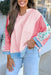 Stylish Colorblock Floral Patchwork Long Sleeve Top with Pocket
