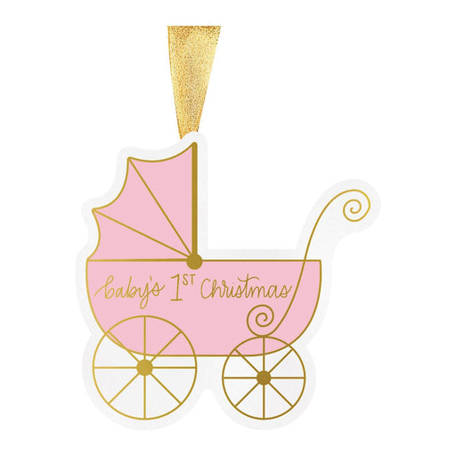 in stockCelebrate your baby girl’s first holiday with the Baby’s First Christmas Pink Carriage Ornament. Featuring a charming pink design, this keepsake ad...
