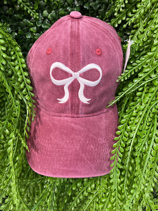 Maroon Hat With White Bow