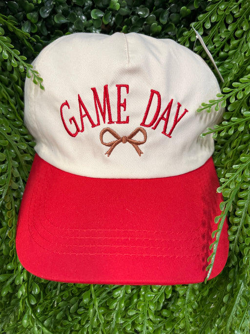 Red & Cream Gameday Hat With Brown Bow