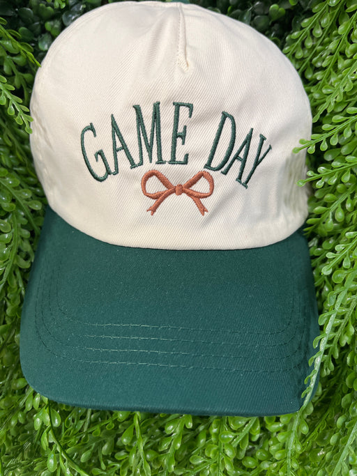 Green & Cream Gameday Hat With Brown Bow