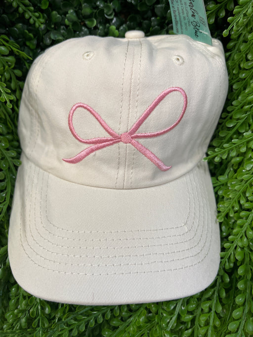 Cream Hat With Pink Bow