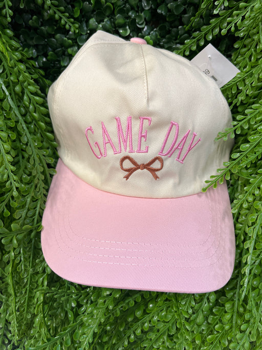 Light Pink & Cream Gameday Hat With Brown Bow