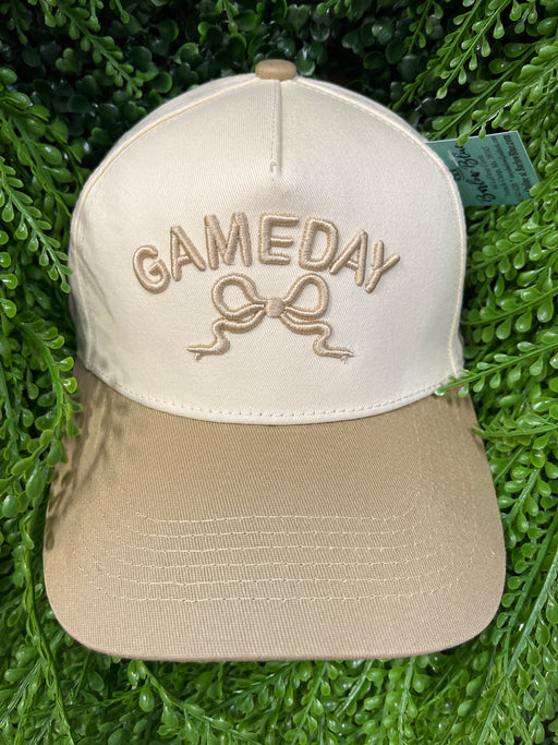 Beige & Cream Gameday Hat With Bow