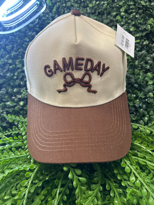 Brown & Cream Gameday Hat With Bow