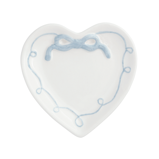 in stockHeart Bow Ring Dish. This exquisite ceramic ring dish showcases a beautifully hand-painted, dimensional ceramic bow and ribbon detail elegantly enc...