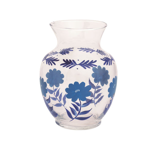 Floral Flourish Blue Glass Vase