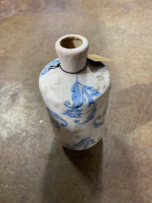 3-3/4" Round x 7-1/2"H Terra-cotta Vase w/ Transferware Pattern, Blue & White, 3 Styles
