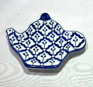 in stockPretty little teabag holder, shaped like a little teapot, has been a top seller for ages. Hand-painted of course and dishwasher safe.