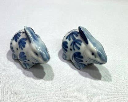Blue & White Salt and Pepper Shakers, Set of 2. Bunny Rabbit
