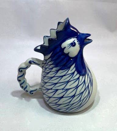Small Blue & White Rooster Creamer Pitcher Vase