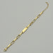 This elegant and modern bracelet is crafted from durable stainless steel with a polished gold finish. It features a unique link chain design, with elongated, rectangular links that create a sleek and sophisticated look. A small, rectangular charm is centered on the chain, adding a subtle focal point. The bracelet is secured with a classic lobster clasp, ensuring a comfortable and secure fit. This versatile piece is perfect for everyday wear or for adding a touch of minimalist style to any outfit.