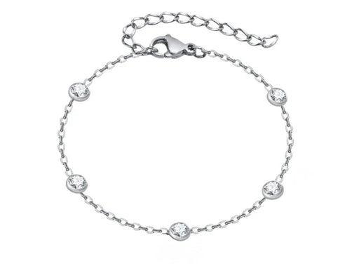 in stockA dainty sparkle that effortlessly complements any look. The Elara Bracelet features five bezel-set AAA cubic zirconia stones along a delicate stai...