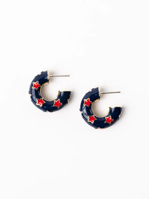 Only 1 left!Show off your school spirit with our Blue, Red, & Gold Justine Hoops! These stunning earrings feature star accents, adding a touch of glamour t...