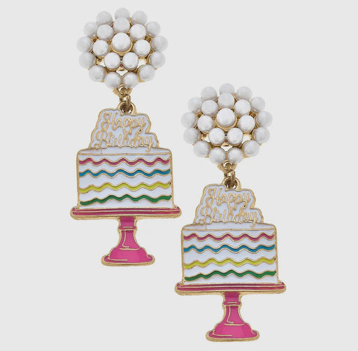 Only 2 left!Celebrate in style with our Birthday Cake Enamel Earrings in White. These earrings are the perfect accessory for any birthday outfit, adding a touc...
