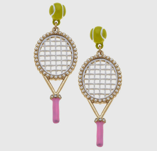 in stockGet ready to serve some cute style with our Teddy Enamel Tennis Racket Earrings in Light Pink! These playful earrings feature adorable mini tennis ...