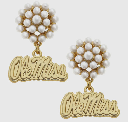 Ole Miss Rebels Pearl Cluster 24K Earrings
