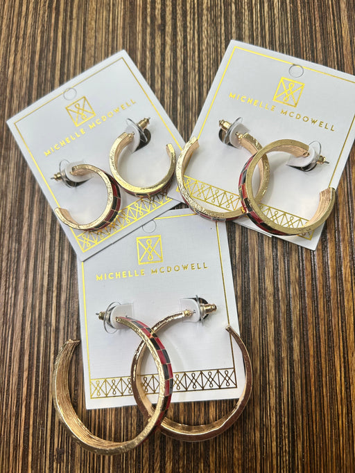 Only 2 left!Introducing our new Deep Red with Gold Detail Amanda Hoops! These gorgeous hoops are the perfect way to show off your school spirit on game day. Th...