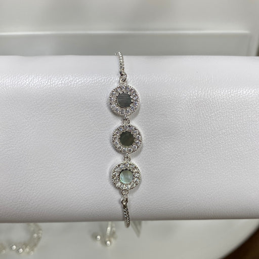 Silver CZ & Grey Mother of Pearl Triple Circle Pull Cord Bracelet