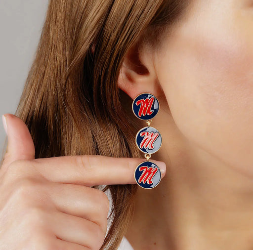 Ole Miss Rebels Triple Drop Enamel Earrings