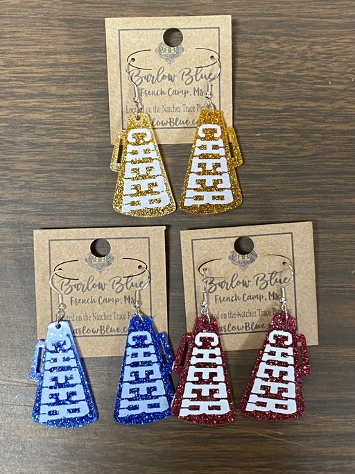 Glitter Acrylic Megaphone Cheer Earrings - 3 Colors!