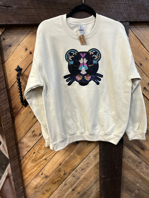 Blossom Pearl Sleeves Ribbed Pullover Sweatshirt. Medium only