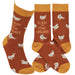 A pair of colorful socks from our Homestead Collection displaying unique hand illustrated designs of chickens with a fun sentiment that reads "Fluent In Fowl Language." Socks feature a one size fits most design made with cotton, nylon, and spandex.