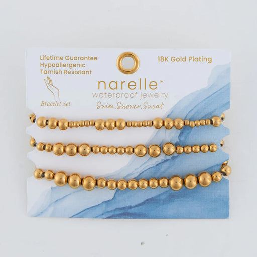 in stockLove a layered look! Featuring three individual strands of varying sizes of 18k gold plated ball chains, the Narelle Waterproof Stretch Graduated B...