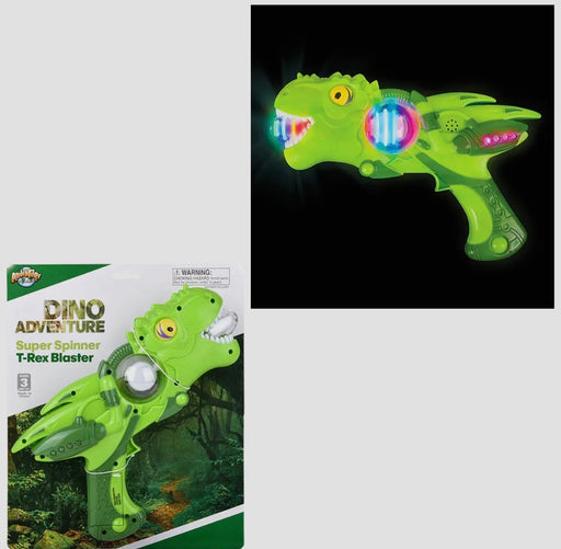 in stockThis 11.5" Super Spinner T-Rex Blaster is a light-up blaster with sound action, this toy creates an outstanding display. 3 AA batteries included an...
