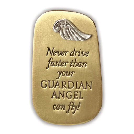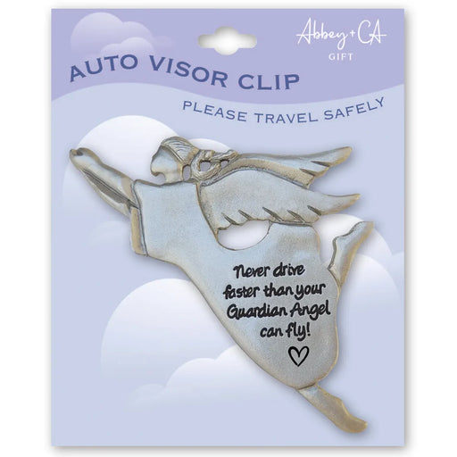 Never drive faster than your guardian angel- Inspirational Tag Visor Clips