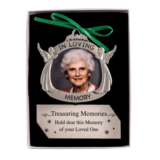 Only 2 left!Angels hold an “In Loving Memory” banner, framing a photo of your lost loved one at Christmas. Keepsake photo ornament crafted of cast metal ...