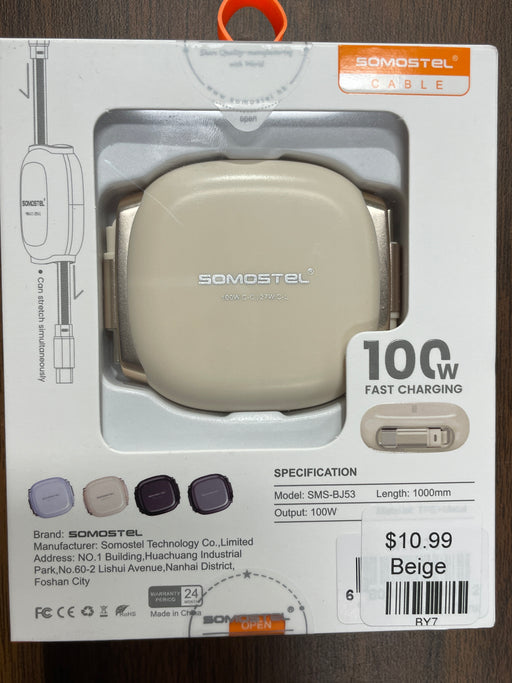 Beige Fast Charging Retractable Cable. USB C.
